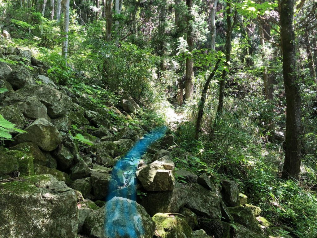 山道を進むと、途中崩れかけている個所やガレ場がいくつかあります。